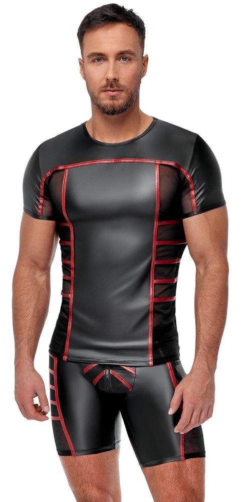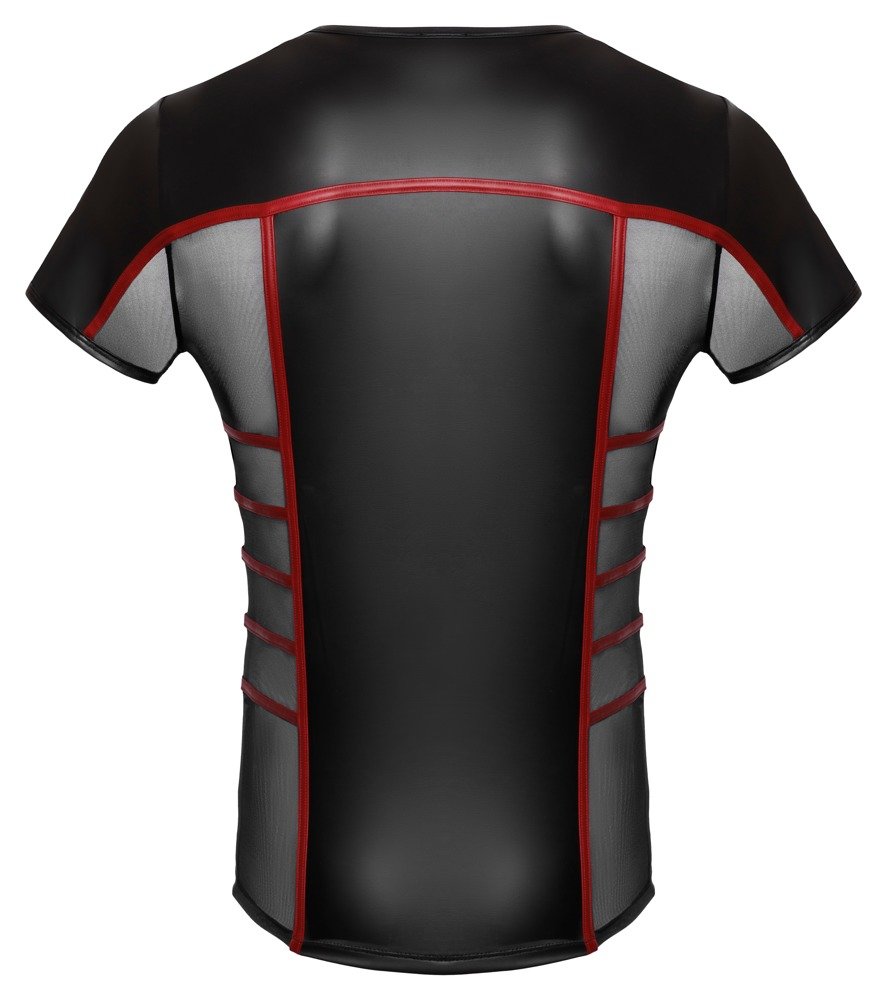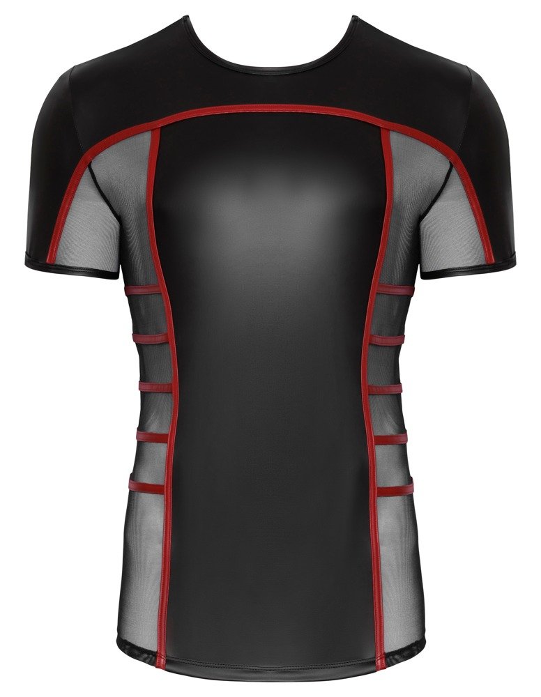 Dit zwarte heren shirt met rode constrasterende rode strepen combineert sexy stijl met ultiem comfort. Welke zorgen voor een zorgen voor een stoere en uitdagende look. Het zachte, elastische materiaal sluit perfect aan op je lichaam. Ideaal voor wie indruk wil maken tijdens spannende avonden.