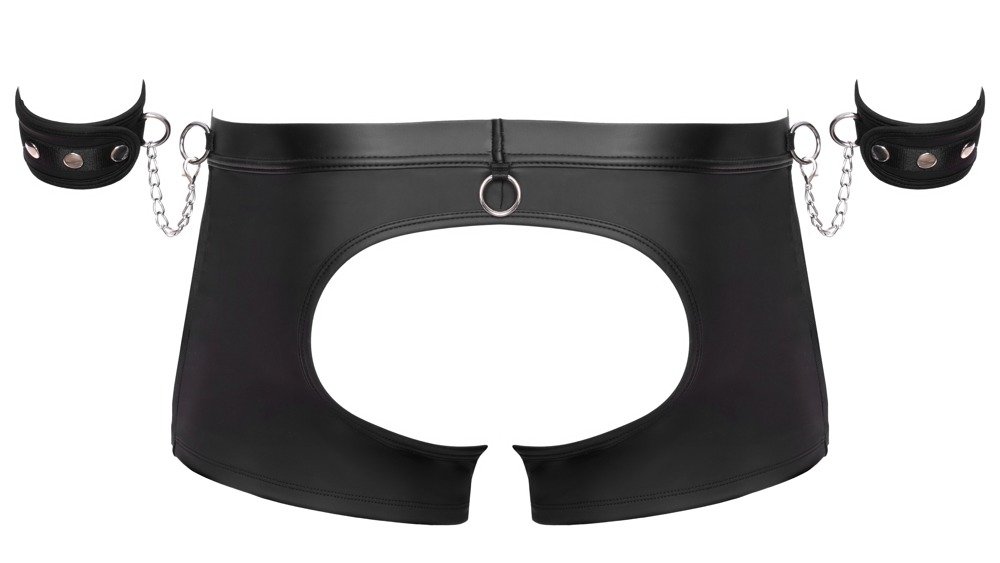 De bijgeleverde zachte handboeien met karabijnkettingen kunnen eenvoudig aan de tailleband of zijkanten worden bevestigd, wanneer jij geboeid door de nacht wilt gaan. Dankzij de zachte, elastische stof en de bedekte tailleband blijft het comfort maximaal, zelfs wanneer het spel intenser wordt.