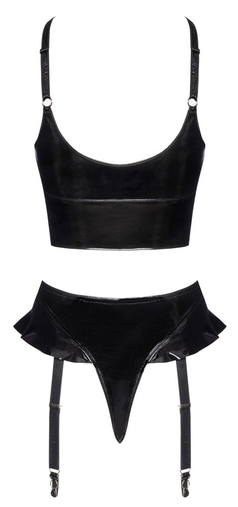 Kenmerken van de zwarte vinyl lingerieset: