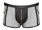 Deze zwarte mesh boxer is ontworpen voor mannen die clubwear zien als expressie. Het transparante mesh wordt gecombineerd met krachtige wetlook details en een afsluitbare pouch met rits, waardoor sensualiteit en comfort perfect in balans zijn.