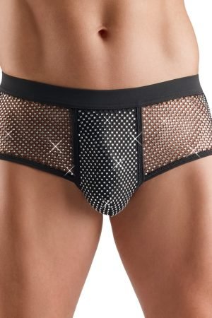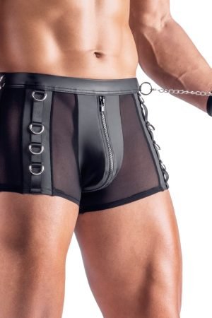 Strakke NEK herenboxer in matte look met blauw metallic strepen en mesh inzetstukken. Elastisch, stoer en gemaakt voor het nachtleven.