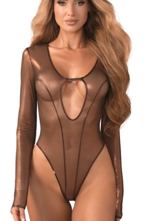 De body Soranna omhult jouw lichaam in glanzend brons met een verfijnde semi-transparante finish die direct in het oog valt. Stretch, comfort en verleiding komen samen in een body die je draagt om te laten zien.